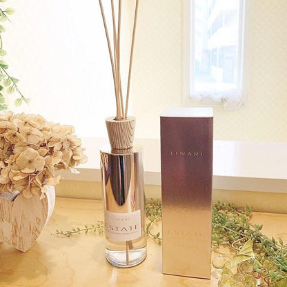 ESTATE is presented in a graduated, mirrored Italian glass bottle, with a refined multiplex birch lid.